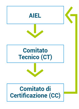 Ai fini del sistema di certificazione, AIEL ricopre funzioni tecnico-amministrative e di coordinamento. In particolare: istruisce le domande di certificazione,